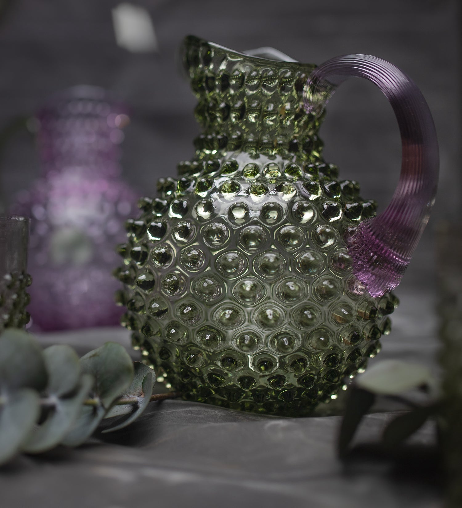 Anna Von Lipa crystal glass is stained using a combination of tradition, technology and earth minerals: bluish shades are achieved by cobalt oxide, the green and brownish colours are associated with iron while the pink and ruby with gold chloride.