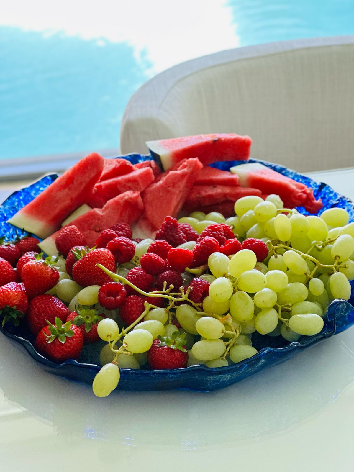 The Medusa glass platters are a sustainable collection made from recycled fused glass. The process involves melting recycled glass and shaping it into different forms and sizes, and then spraying it with colour while still molten.