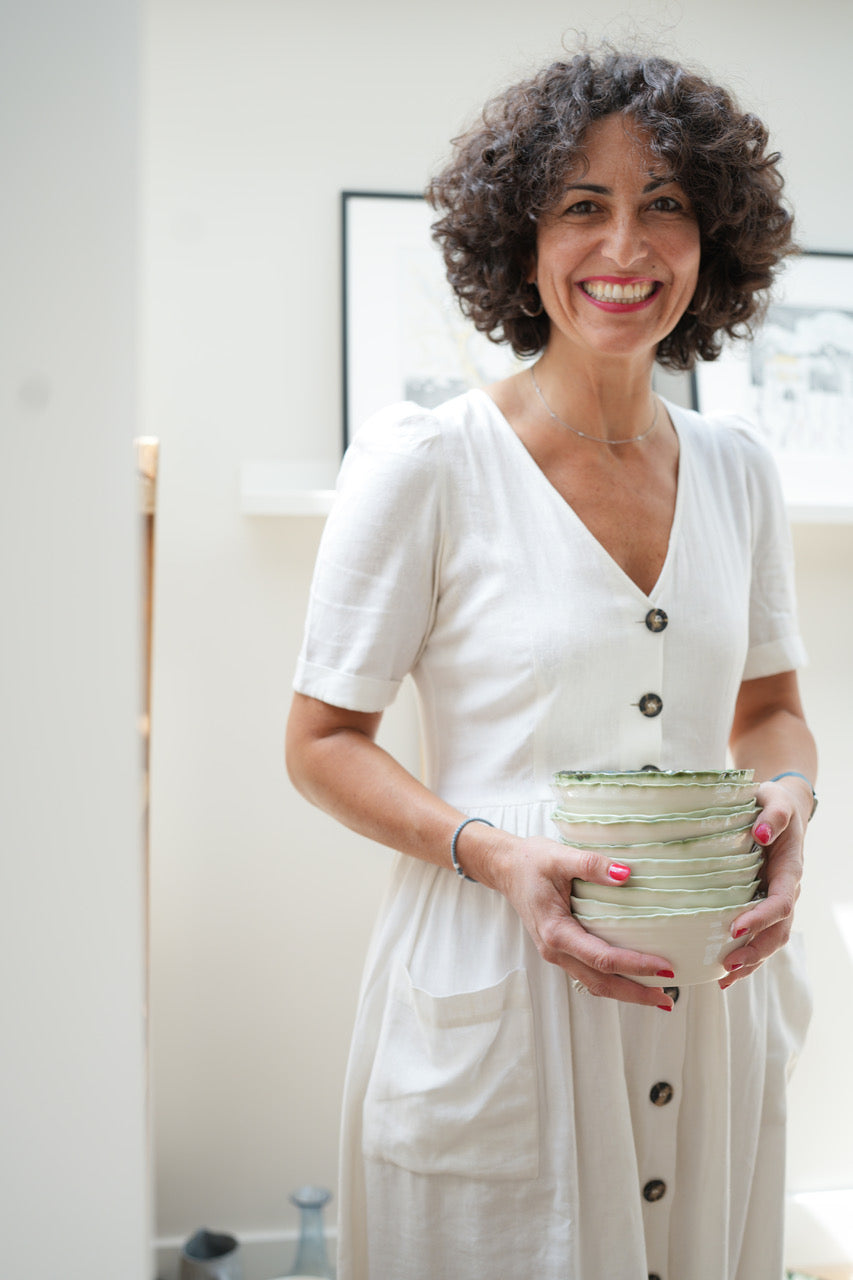 What initially began as a mere hobby has blossomed into an all encompassing passion, and I consider myself incredibly fortunate to be able to do what I love every day. Along my journey, I earned my Diploma in Ceramics through training with esteemed mentors like Akiko Hirai and Chris Bramble. Over the past three years, I've proudly managed my own brand, delivering my unique creations to clients around the world and crafting bespoke collections to suit their individual tastes and needs".